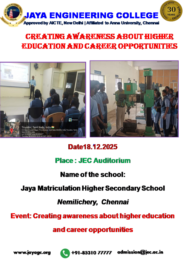 Creating awareness about higher education and career opportunities Jaya Matriculation Higher Secondary School, Nemilichery, Chennai